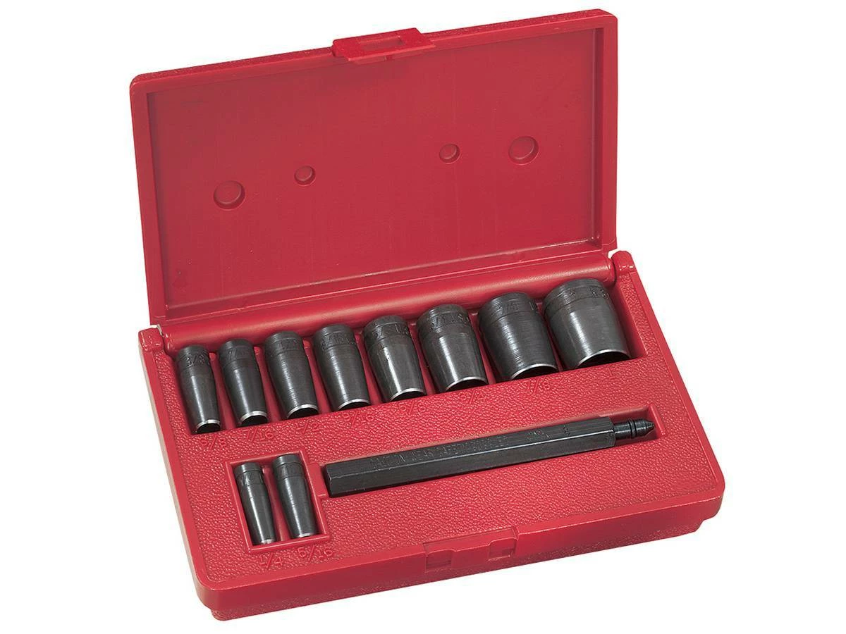 The #S1270 10-piece Gasket Punch Set is ideal for punching holes in gasket material, leather, rubber, canvas, cardboard, plastic, sheet metal and other soft materials.