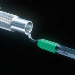 - COLOR CODED HANDLES – use GREEN for aluminum and copper, RED for brass & iron, BLUE for stainless steel, and YELLOW for plastic