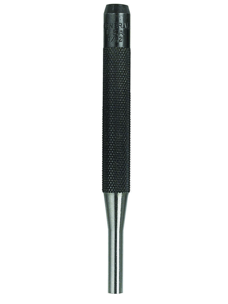 The #75F 7/32 In. Drive Pin Punch, 4 In. Long is ideal for removing metal pins from holes in machine shops and motor service bays.