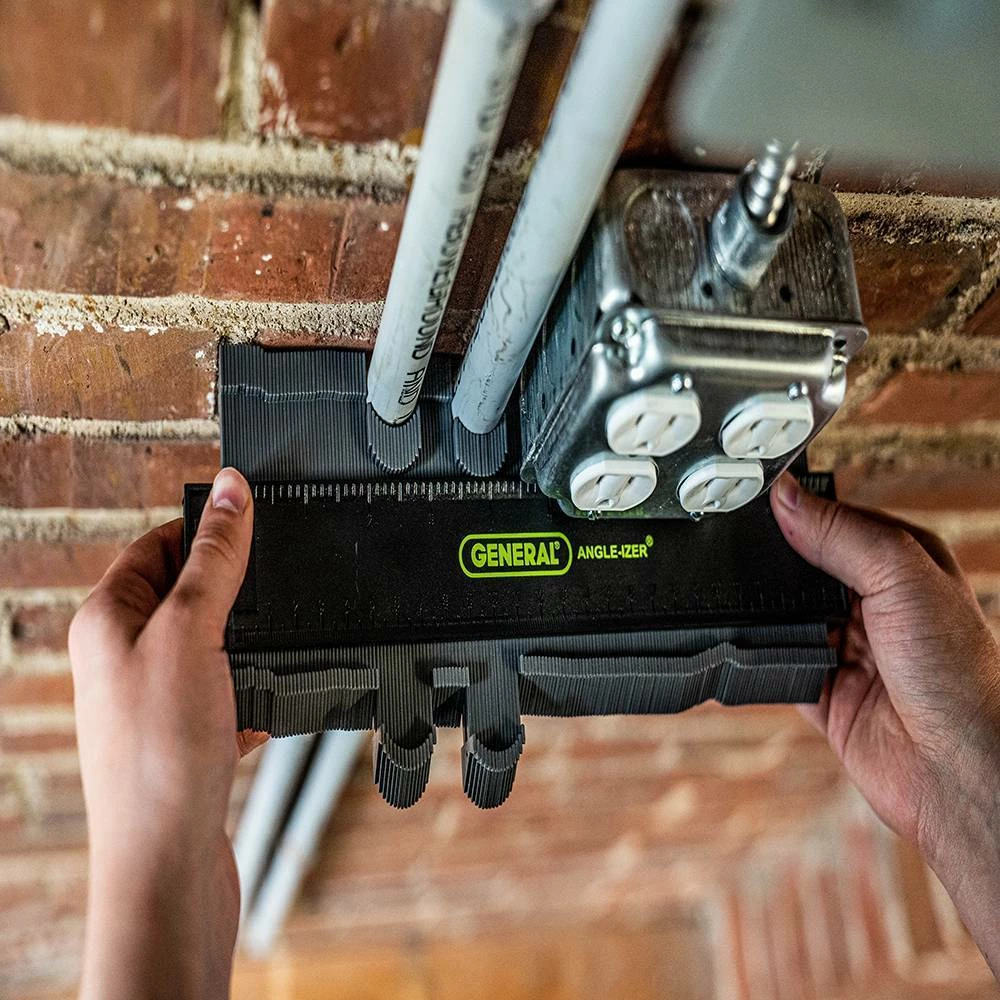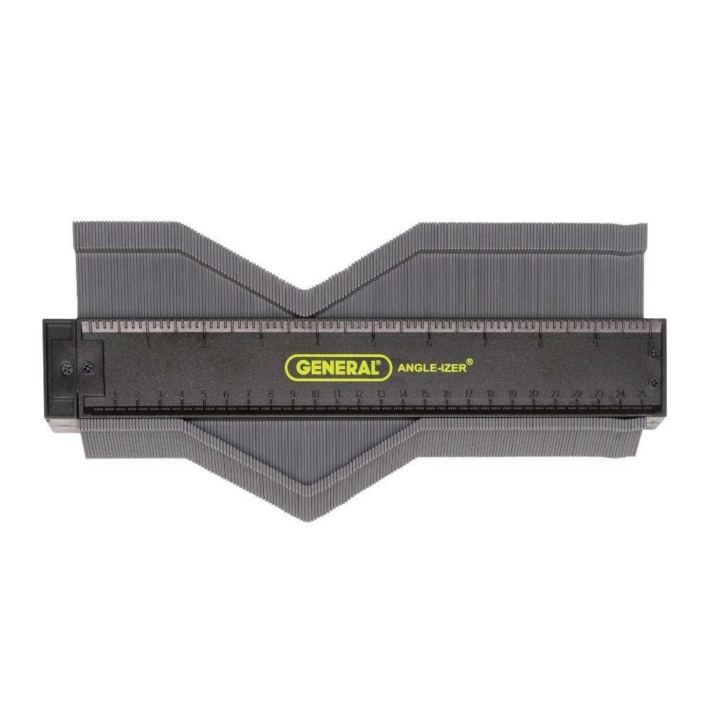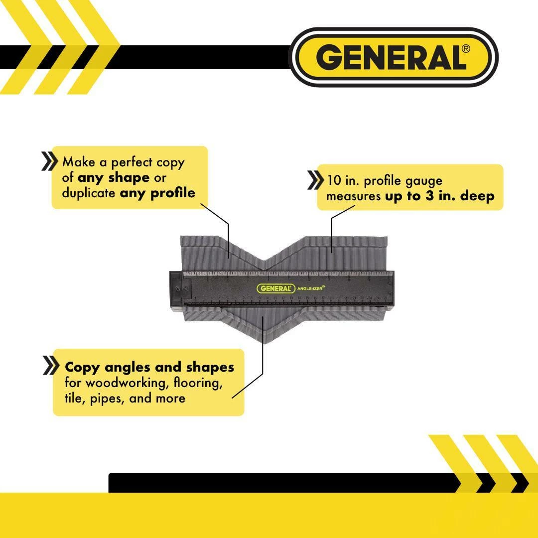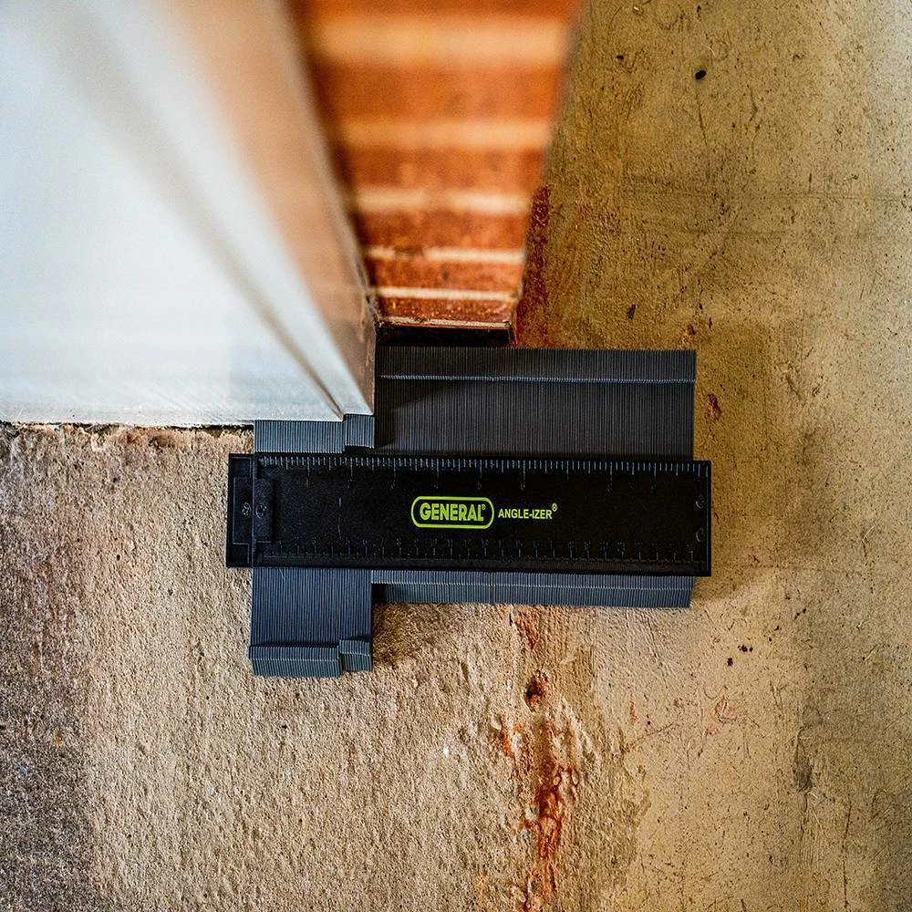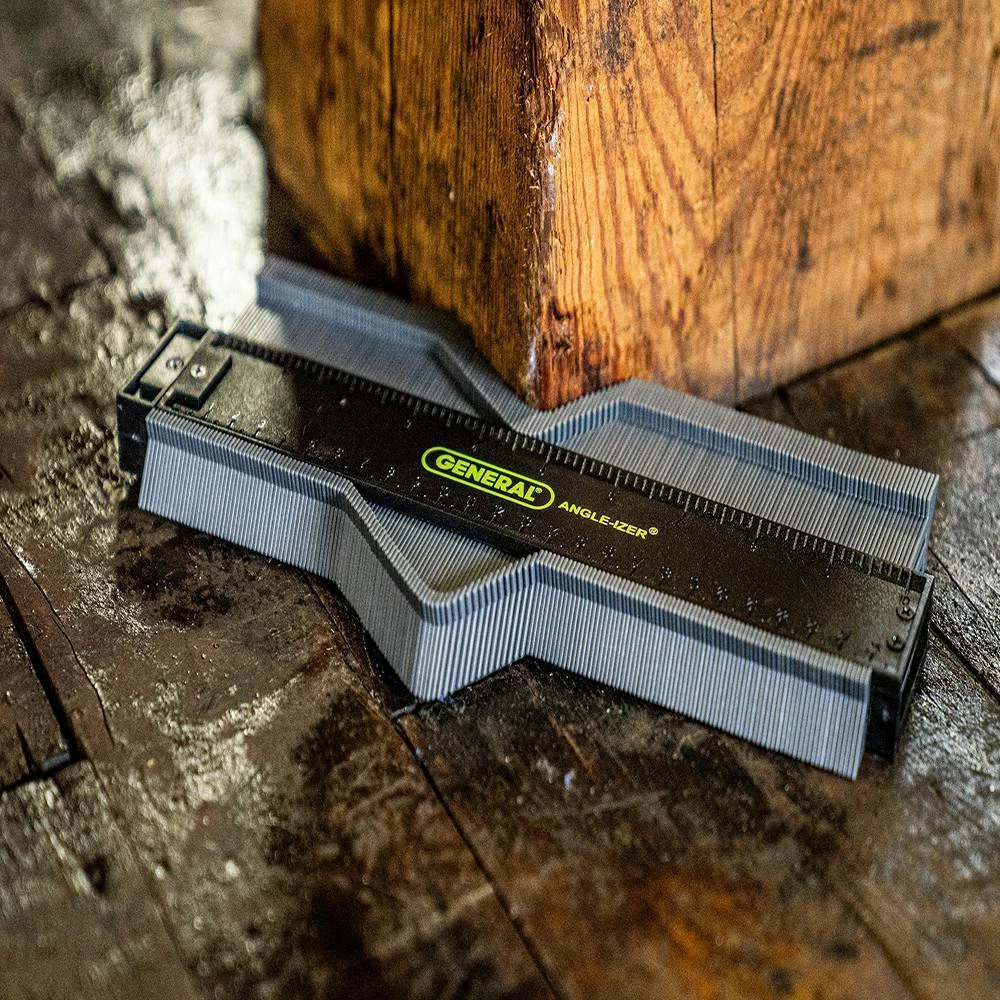 The 833 ANGLE-IZER® 10 in. Contour Gauge, can duplicate any shape instantly. This profile gauge creates an instant template for curved and odd shaped profiles simply and easily. Never transfer profiles to paper or cardboard again. The contour gauge makes measuring and cutting easy. Reminiscent of a hair comb, the tool—also known as a profile comb—features a row of long, thin, moveable teeth and a perpendicular housing that holds them in place as they take an impression of the surface. Ideal for measuring moldings for reproduction, duplicating spindles on the lathe, fitting flooring around moldings, copying curves and a variety of other contour matching jobs around the home and shop. It fits around most common pipes and round columns and allows you to easily copy shapes to tile, laminate, engineered wood, solid wood and vinyl flooring to precisely cut flooring to match objects. The gauge eliminates the guessing of dimensions of irregular shapes.