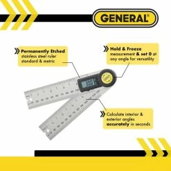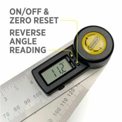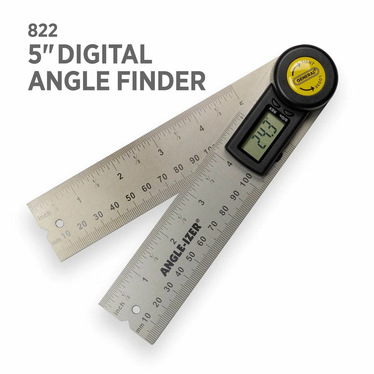 The #822 ANGLE-IZER® Digital Angle Finder, 5 in. is ideal for finding angles in tight spots. With the lock angle feature the user can improve accuracy and save time. This precision stainless steel digital angle finder with measuring rulers also has a built-in reverse angle function for added usability and convenience. Equipped with large easy-to-read display, an accuracy of 0.3°, and a Range: 0° to 360° allows the 822 to measure interior and exterior angles quickly and accurately