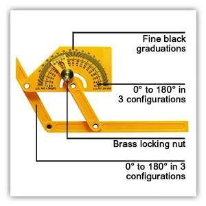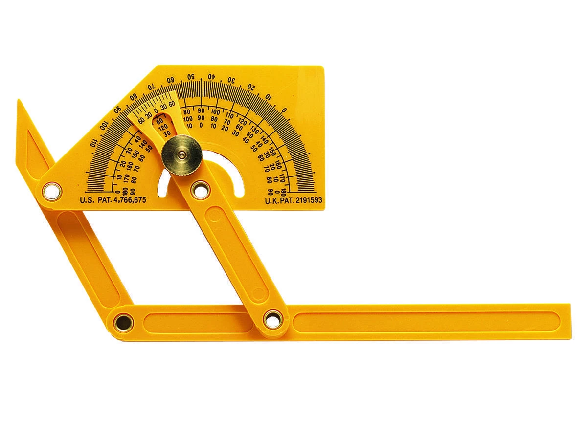The #29 ANGLE-IZER® Plastic Protractor facilitates measurement and marking of inside, outside and sloped angles. It is ideal for construction jobs, cabinet-making and fine carpentry, where a standard protractor or t-bevel won’t fit.