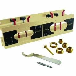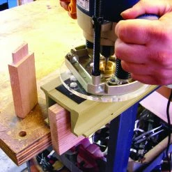 Ready to use right out of the box to produce 1/4″ mortise and tenon joints for cabinets, furniture and frames. Included are bushings for also producing 3/8″ and 1/2″ joints with other size optional spiral up cut bits (not included). Using A plunge router with the jig, woodworkers of all skill levels can cut fully aligned mortises and tenons ranging from 1/4″ to 1/2″ wide and from 1” to 3″ long. The jig can be mounted directly on a workbench or onto a board that can be clamped in a vise or to a bench.