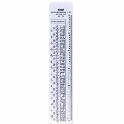- INCLUDES REFERENCE TABLE- Front has machine screw size tap drill chart for recommended 75% depth thread and back has decimal equivalents table in 64ths from 1/64″ to 63/64″