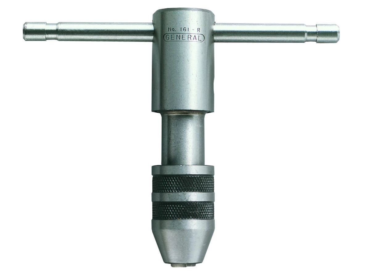 The #161R Ratchet Tap Wrench for No. 0 to 1/4 In. Taps is designed to hold and turn taps—tools that cut threads on the inner surface of a hole or pipe—or other small tools, such as hand reamers and screw extractors.