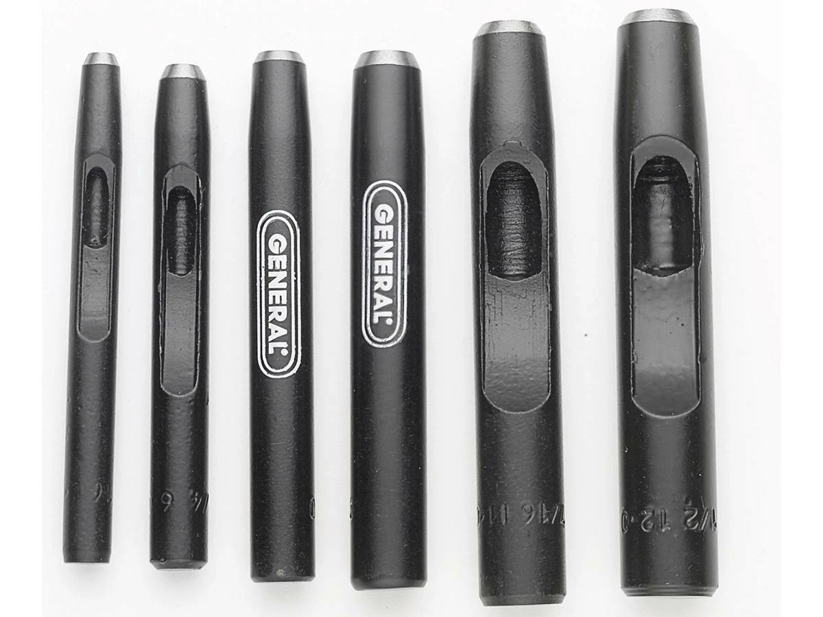 The #1280ST Six-piece Hollow Steel Punch Set is ideal for punching round holes in gasket material, leather, rubber, canvas, cardboard, plastic, sheet metal and other soft materials.