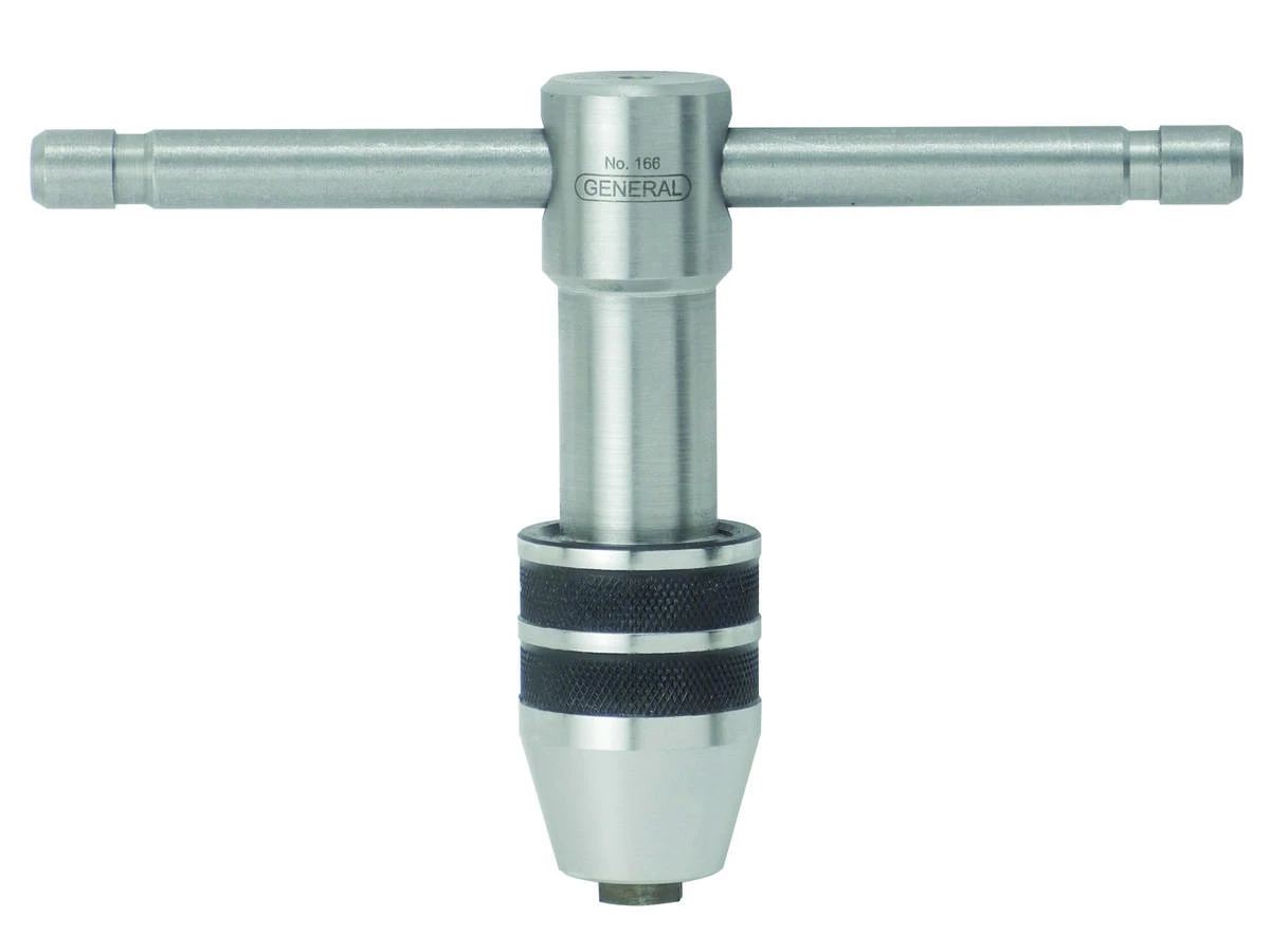 The #166 Tap Wrench for No. 12 to 1/2 In. Taps is designed to hold and turn taps—tools that cut threads on the inner surface of a hole or pipe—or other small tools, such as hand reamers and screw extractors.