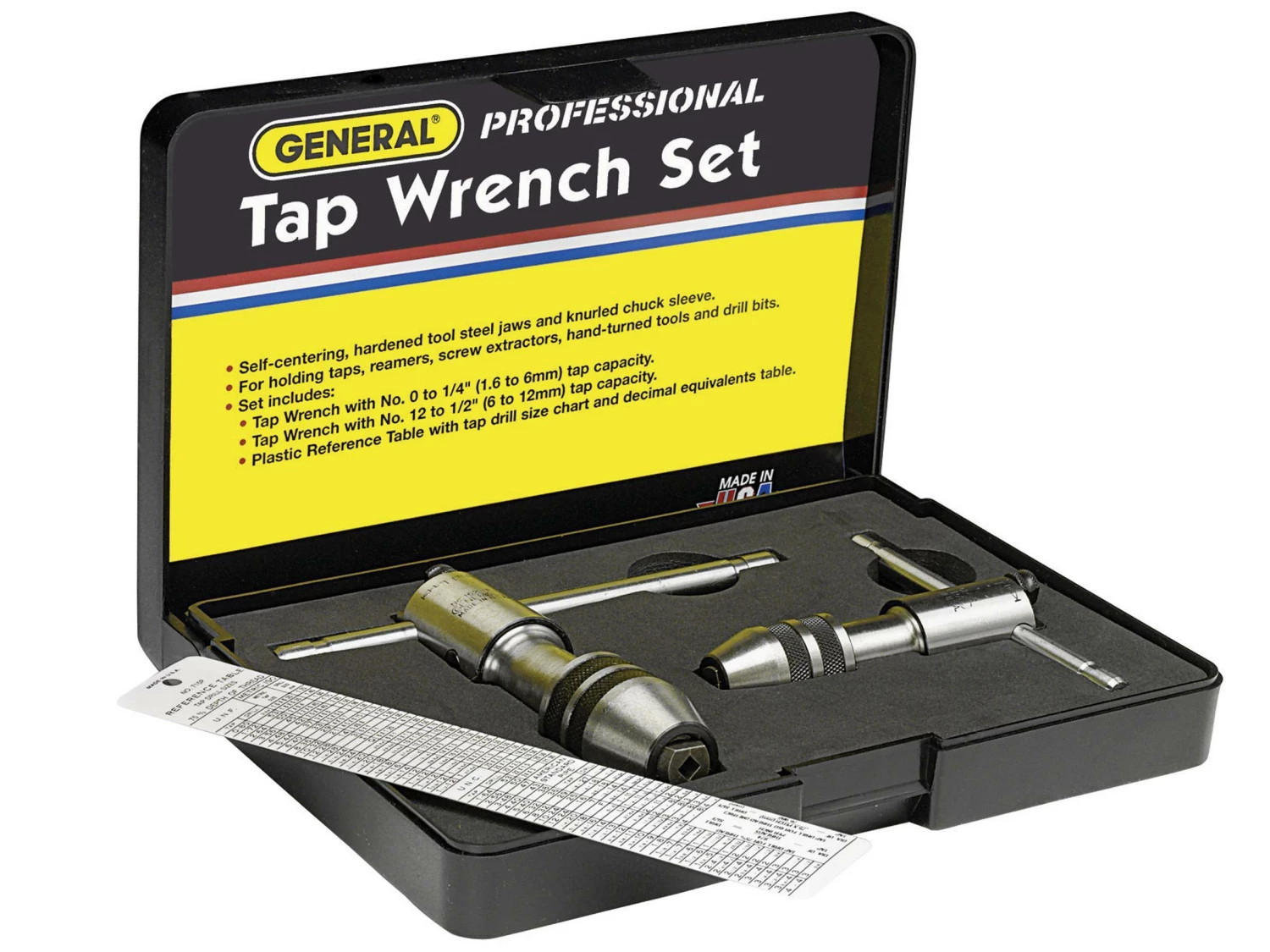 The #165 Two-piece Ratchet Tap Wrench Set includes the #161R Ratchet Tap Wrench for No. 0 to 1/4 In. Taps and the #162R Ratchet Tap Wrench for No. 12 to 1/2 In. Taps